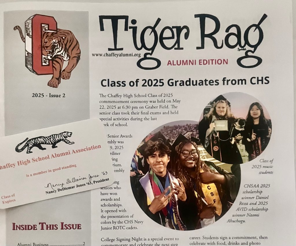 Keep in touch with your former classmates and fellow alumni through the Chaffey High School Alumni Association. Along with your membership, you’ll receive the Tiger Rag alumni newsletter three times a year. Each 40-page issue has information on CHSAA activities, class reunions, campus news, alumni who has passed on, and interesting historical and community information. You’ll receive an acknowledgment of your membership, a welcome letter, the latest issue of the Tiger Rag and a membership card to confirm your membership.